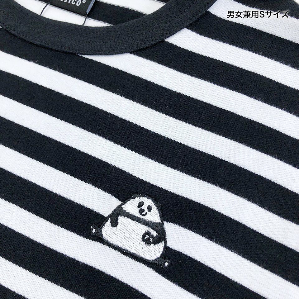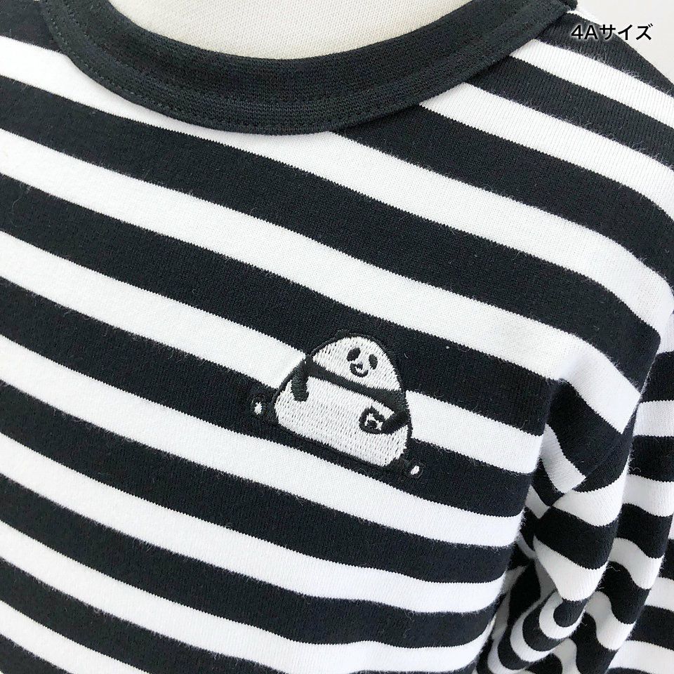 刺繍ボーダー長袖Tシャツ「OMUSUBI PANDA」(おむすびパンダ)