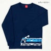「ECO POWER ブルーサンダー」の愛称で親しまれるEH200形電気機関車がモチーフの長袖Tシャツ☆ 2車体が連結した形のブルーサンダーの、前半部をTシャツの前側、後半部をTシャツの後ろ側にプリント。おそろいでつながればブルーサンダーの力強い車両が現れます☆ バックには雷様も。おへそを取られないか心配しているみたいです♪ JR貨物商品化許諾済