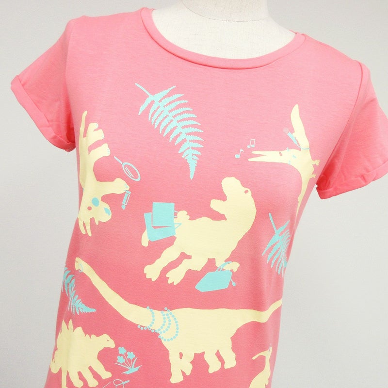 OJI子ちゃんでは珍しい恐竜柄が登場☆ 「もし恐竜がこのまま進化したら…?」という仮定を基に描かれた恐竜たちは、 ショッピングを楽しんだり、カラオケを歌ったり、お花を生けたり。コスメやアクセサリーにも興味津々です♪ Tシャツの「DINO#1」とシリーズになっているので、おとこの子とおんなの子と、そしてパパママと、ひとひねりあるお揃いをお楽しみください☆ ※この商品はwebと一部店舗で取扱い中です。