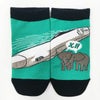 BLACK OJICOのスーパーストレッチソックスがリニューアル☆ 「くっつくした」になりました♪ 通常のくつ下に比べて伸縮率が非常に大きいのび~るくつ下は、カバーできるサイズも広いので、サイズに悩んだりサイズアウトで履けなくなったりということも少なくなります!厚手でしっかりした生地ははき心地もバツグン☆ 両足を揃えるとながーいお鼻の先頭車両が描かれた「ALFA-X」が完成します♪ ※JR東日本商品化許諾済 素材:綿、ポリエステル、その他 中国製