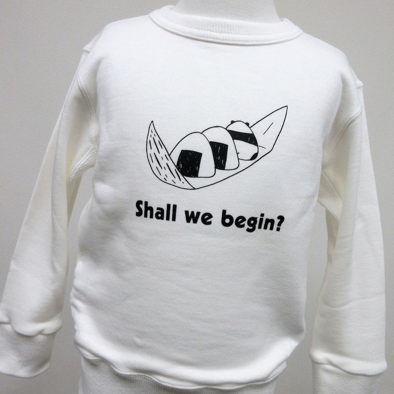 大人気の「おむすびパンダ」がスウェットになって登場☆ フロントには笹に入ったおにぎりと…? 上手に紛れてるパンダさんの後姿。 バックにはどーんとおにぎりを頬張るパンダさん♪ 口のまわりにご飯粒をつけて、食いしん坊ですね…! 「Shall we begin?」は、「(お昼ごはんを)始めませんか?」という意味です。 みんなで着てピクニックでも行きませんか? 素材:綿100% 日本製