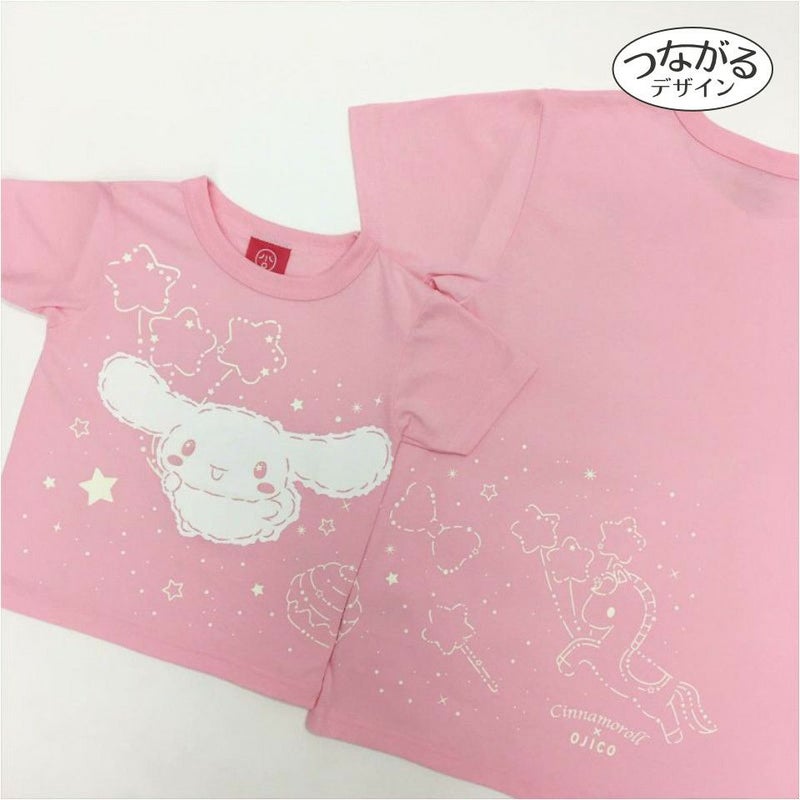 シナモロール×OJICOの半袖Tシャツが登場☆ 「夜空」は夜空を飛んでいるシナモンをイメージしました! 蓄光プリントなので暗闇で光る「シナモン座」が見えますよ♪ © 2022 SANRIO CO., LTD. APPROVAL NO. L630447