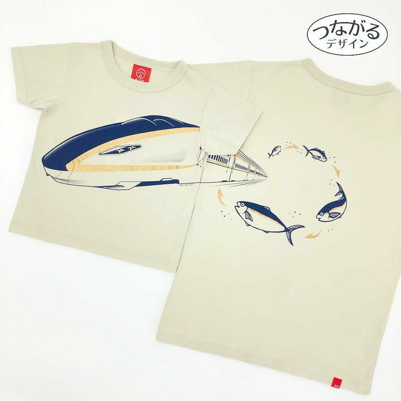 大人気デザインの「SHUSSEUO(シュッセウオ)」が半袖Tシャツで再び登場☆ フロントからバックまでつながる北陸新幹線「かがやき」。 バックには北陸の名産品、ブリがデザインされています。成長に合わせて名前が変わっていく出世魚のブリが、順々に出世して最後には北陸新幹線に大出世! 同デザインのハーフパンツとのコーディネートもおすすめです♪ JR東日本商品化許諾済