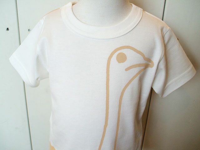 大きな大きなダチョウを2分割してフロント・バックにプリントしたアヴァンギャルドな一枚。 フロントのダチョウの素朴な表情がたまりません☆ 「アフリカの原っぱで生息し、 強靭な脚で大地を蹴って、 めちゃめちゃ速く走るダチョウ。 こいつを着ると誰にも負けないくらい はやく走れるかも☆ 空は飛べないんだけどね…」