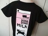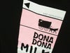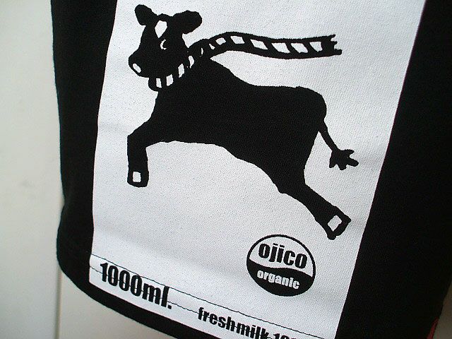 ある晴れた 昼下がり 市場へ続く道… 有名なあの歌をモチーフにしたTシャツ『DONA DONA』☆ かなしそうな瞳の仔牛がとった行動は…? OJICOらしいヒネリの効いたストーリーが楽しい、元気な1枚です! 「ある晴れた昼下がり 市場へ続く道 かなしそうな瞳の仔牛は 意を決して大脱走 逃げ込んだ牧場で大恋愛をして 今やりっぱな乳牛に。 だからほら、牛乳残しちゃいけません!」