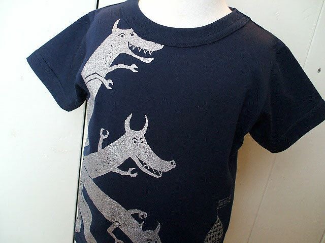 お姫様の住むお城に、おおきなドラゴンがやってきた! 危うし、お姫様…! と思いきや、お姫様とドラゴンは大の仲良し、一緒に遊びに行きましたとさ。 という、絵本の世界そのままのストーリーが魅力のTシャツ「DRAGON」 個性豊かなドラゴンたちの表情にも注目です☆ 「兄弟のドラゴン マリーちゃんと会う 1ばんめ にいさん おやおや おどろき 2ばんめ にいさん ペロリ したなめずり 3ばんめ にいさん どきどき むねたかなり 4ばんめ にいさん わっしょい おどりだす 5ばんめ おとうとは ふわりと おじぎ お花をあげた 今日はみんなで おさんぽだ」