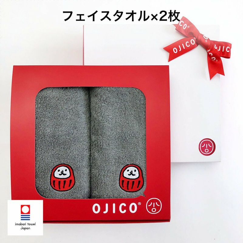 抜群のやわらかさと吸水性の高さが特長の「今治タオル」のギフトセットです。 ○BOXラッピングでお届けします。 ○内祝ギフトは商品にのし紙をかけ包装紙で包んだ「内のし」でお届けします。 ※表書きへの名入れ等、詳細希望の方はご注文時の備考欄にてお申し付けください。 「フェイスタオル2枚セット」は、34×80cmのフェイスタオルが2枚入ったセット。洗面所やキッチン、スポーツ時など幅広い場面で活躍します。 右下にはOJICOならではのOJCピスネームと、ダルマの刺繍がワンポイントとしてあしらわれています。 今治タオルの高品質と、OJICOの遊び心あるデザインが融合した特別なギフト。 大切な方への贈り物にぜひご利用ください。 素材:綿100% 日本製 今治タオルブランド認定番号:第2024-1846号