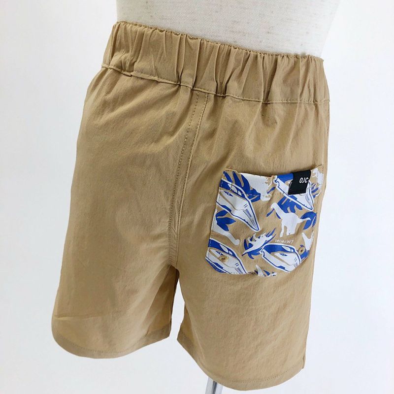 さらりと涼しい軽量・速乾素材の「ポケッタブルハーフパンツ」☆ 普段使いはもちろん、ちょっとした水遊びもOK! 縦のび、横のびともに優れており、75cmのベビーから快適にご着用いただけます。 くるっと丸めてコンパクトに収納できるポケッタブル仕様。夏のお出かけや、アウトドアシーンにもぴったりです。 左裾にはキラリと反射する「OJC」のリフレクタープリント☆ 後ろポケットにはW7系かがやきと恐竜のシルエット☆北陸新幹線が延伸開業した福井にちなんでいます♪ JR西日本商品化許諾済