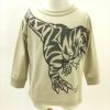 恐竜デザインのつながるシリーズが長袖で登場しました! ティラノサウルス vs トリケラトプス! 2体の柄をよく見ると実は迷路になっています♪ その迷路に挑む小さな2匹のネズミたち! 戦いのすき間を通って逃げ切れるでしょうか? みんなもネズミと一緒に迷路に挑戦してみよう♪ 袖口はリブ仕様なので大きめサイズでも手元がすっきりと見え、 手を洗ったり、腕まくりをする際にも便利です。