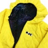 BLACK OJICOのリバーシブルで使える中綿ジャケットに新作が登場! 長袖Tシャツでも人気の「スペースドクター」柄と無地キルティングのどちらを表にしてもかわいい本格ジャケットは、ダウンではなく中綿なので、活発なお子さんにも暑くなりすぎません☆ ポリエステル生地で軽くて滑りがいいので、小さなお子さんでも着脱カンタン♪ ジッパー上部のファスナーカバーや吊り下げ用のループなど、細かい部分にもこだわったBLACK OJICOの中綿ジャケット・スペースドクター☆グレーとイエローの2色展開で登場です! 素材:表地/ポリエステル100%、裏地/ポリエステル100%、中綿/ポリエステル100% 中国製 JR東海承認済、JR西日本商品化許諾済