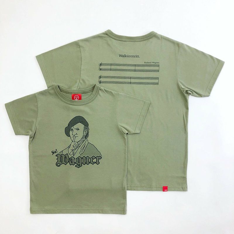 歴史上の偉人たちをインテリジェンス&アヴァンギャルドに表現する「OJICO×GREAT PERSONS」シリーズ。 「ワーグナー」はOJICOらしい言葉遊びが楽しいTシャツ。フロントのワーグナーの肖像はなぜか人差し指を立てています。その下には「Sa!Wagner」(騒ーぐなー)。 バックの楽譜(「ワルキューレ」でしょうか)にも、音符がひとつもなくなっています。 【Wilhelm Richard Wagner】 ヴィルヘルム・リヒャルト・ワーグナー 1813 - 1883 ドイツの作曲家、指揮者、思想家。オペラの作曲から台本執筆、さらには理論家、文筆家としても知られ、音楽界だけでなく19世紀後半のヨーロッパに広く影響を及ぼした。