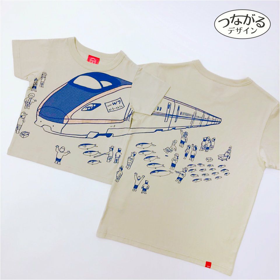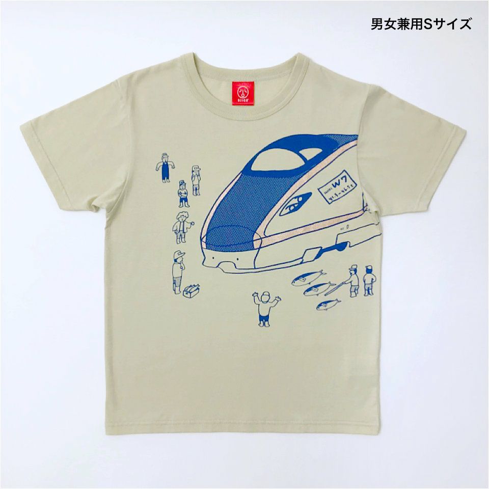 北陸新幹線W7系がモチーフの「UO-ICHIBA」(魚市場)! 魚市場に現れたW7系に、市場の人たちもびっくりしています☆ いったいいくらの値がつくのでしょうか? JR西日本商品化許諾済