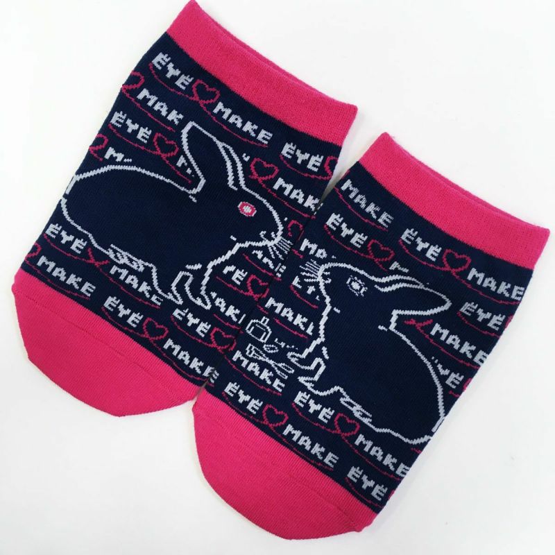 BLACK OJICOのスーパーストレッチソックスがリニューアル☆ 「くっつくした」になりました♪ 通常の靴下に比べて伸縮率が非常に大きいのび~る靴下は、カバーできるサイズも広いので、サイズに悩んだりサイズアウトで履けなくなったりということも少なくなります!厚手でしっかりした生地ははき心地もバツグン☆ 両足を揃えると2匹のうさぎが見つめ合ってメイクをしてあげています♪最近のうさぎはおしゃれさんですね☆ 素材:綿、ポリエステル、その他 中国製