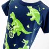 大人気の「JURASSIC SP0RTS」が半袖Tシャツにも登場しました☆ 恐竜たちがいろいろなスポーツに挑戦しています♪ ティラノサウルスはBMX、トリケラトプスはスケートボード、スピノサウルスは水泳、パキケファロサウルスはサッカー、アンキロサウルスは野球。 みなさんのお気に入りの恐竜はどのスポーツに挑戦していますか?一緒に練習しましょう♪