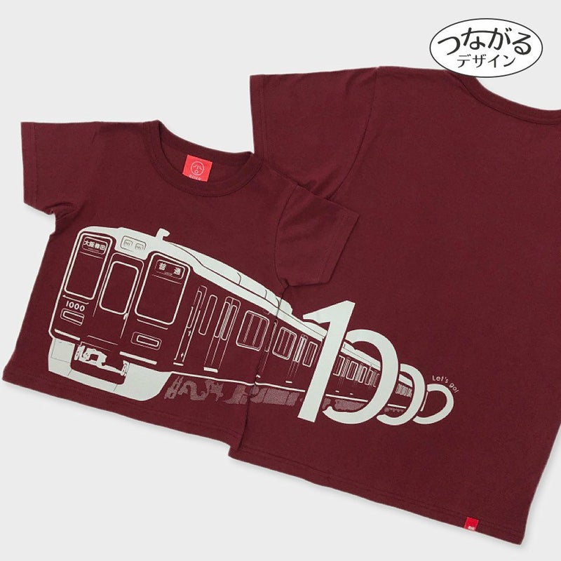 阪急1000系が「1000」を抜けて走り出しています! 神戸や大阪へ、みんなを乗せて出発進行♪ つながるデザインなので、きょうだいや親子でおそろいコーデをお楽しみください! 阪急電鉄商品化許諾済
