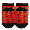 BLACK OJICOのスーパーストレッチソックスがリニューアル☆ 「くっつくした」になりました♪ 通常の靴下に比べて伸縮率が非常に大きいのび~る靴下は、カバーできるサイズも広いので、サイズに悩んだりサイズアウトで履けなくなったりということも少なくなります!厚手でしっかりした生地ははき心地もバツグン☆ 両足を揃えると絵柄が繋がります♪ 素材:綿、ポリエステル、その他 中国製
