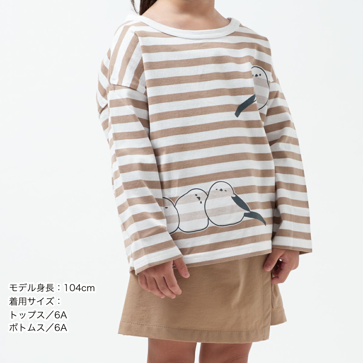 ボーダーワイド長袖Tシャツ「SHIMASHIMAENAGA」(シマシマエナガ)