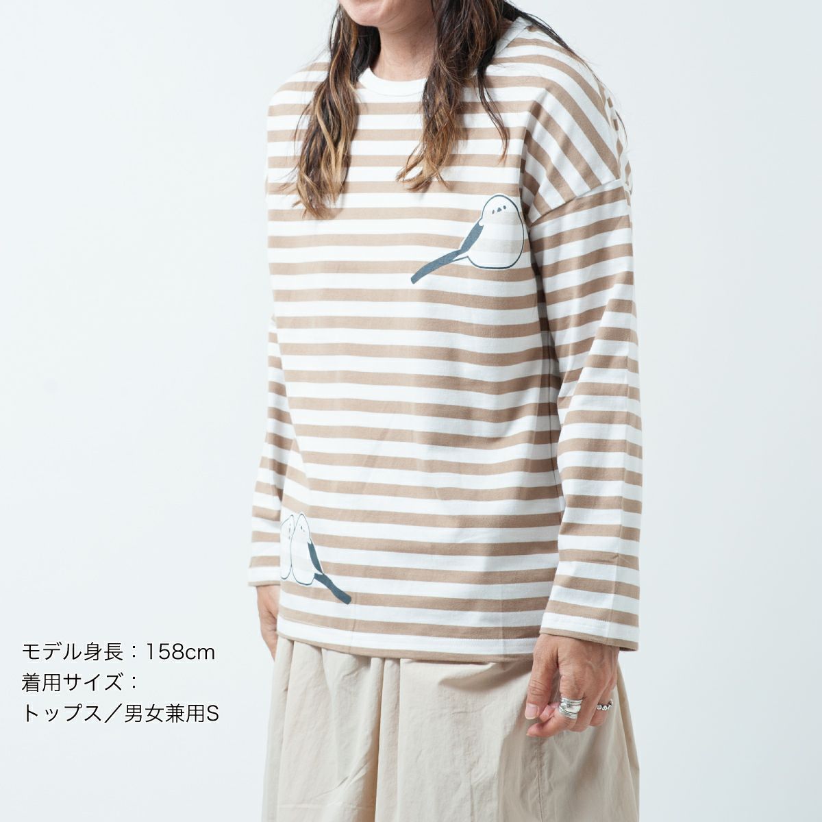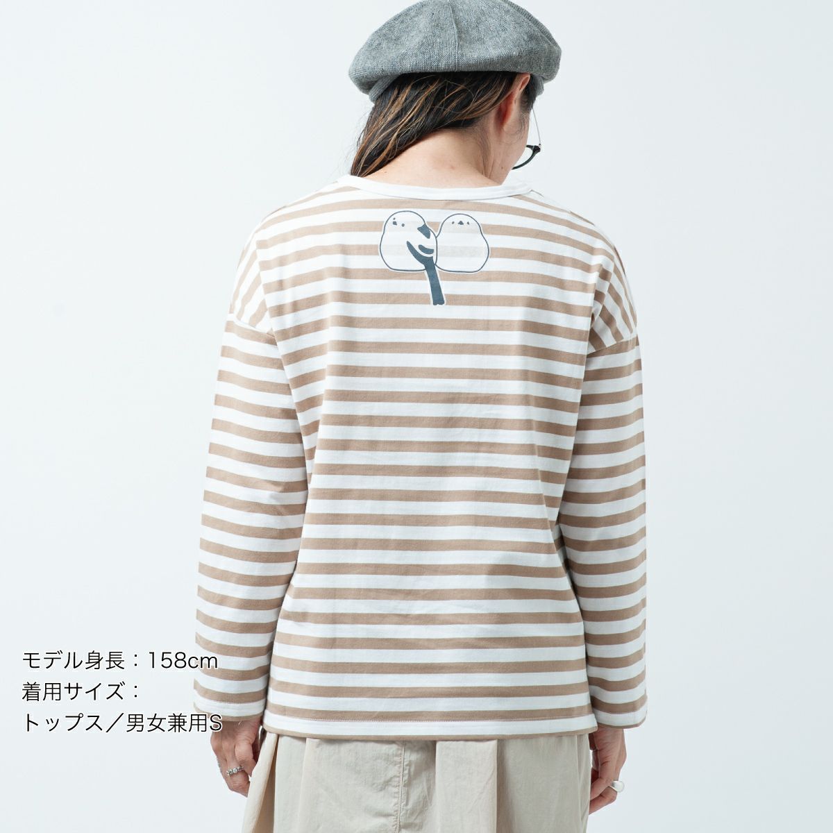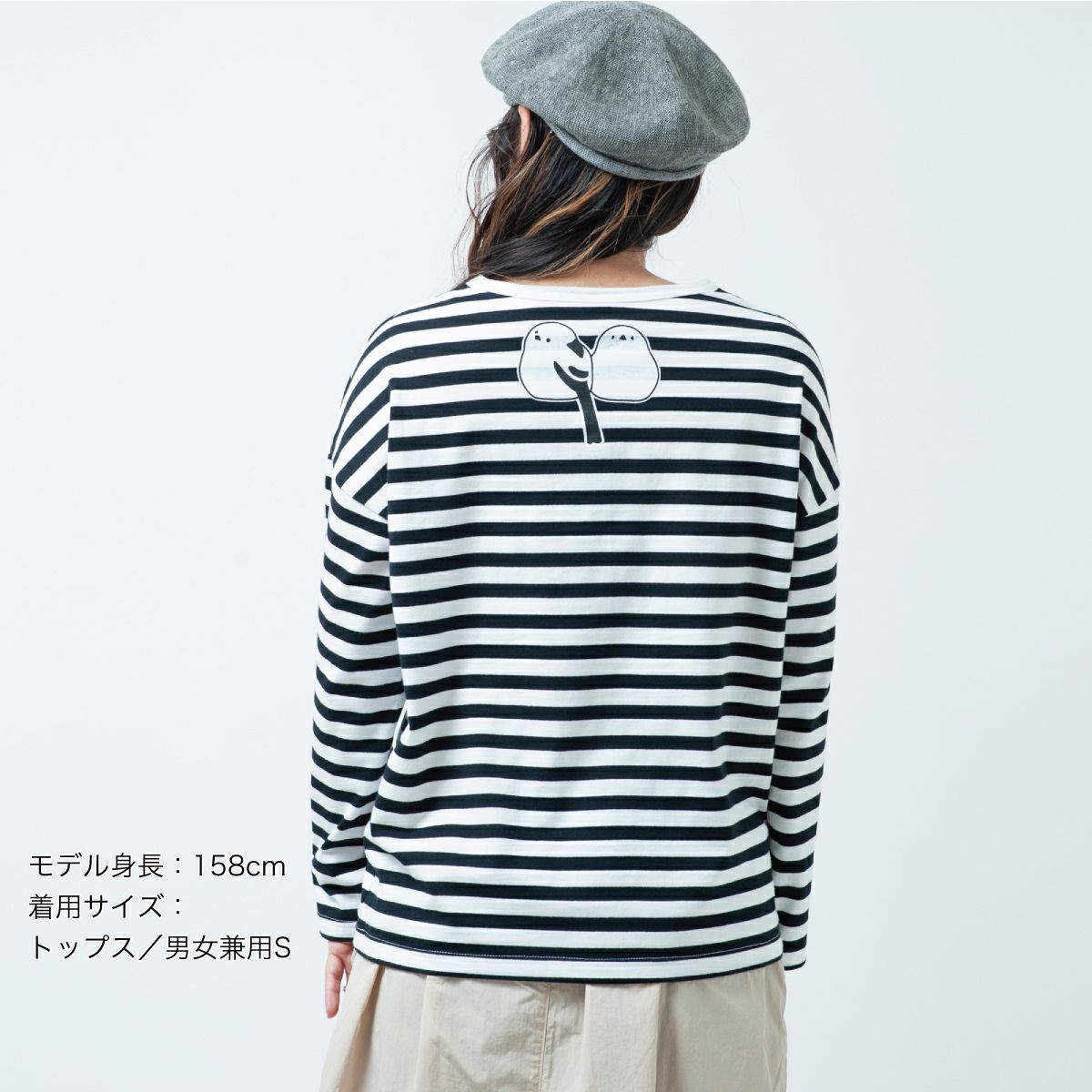 ボーダーワイド長袖Tシャツ「SHIMASHIMAENAGA」(シマシマエナガ)