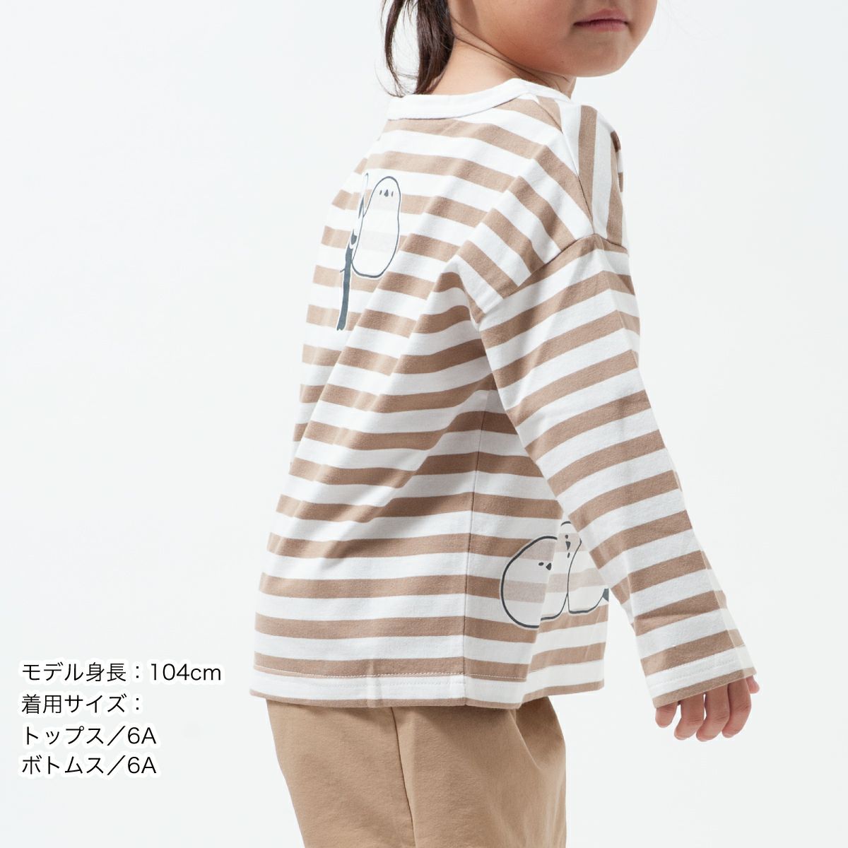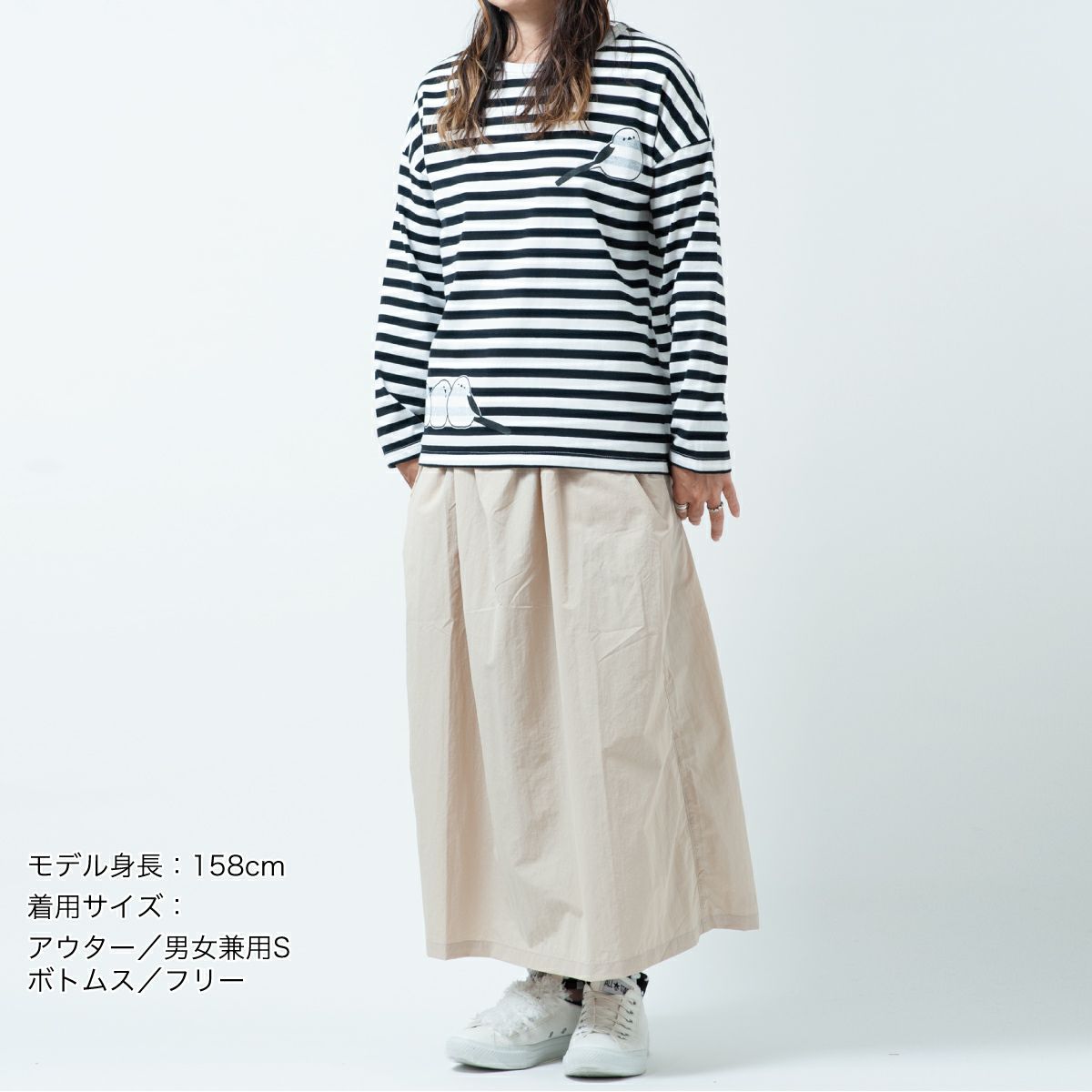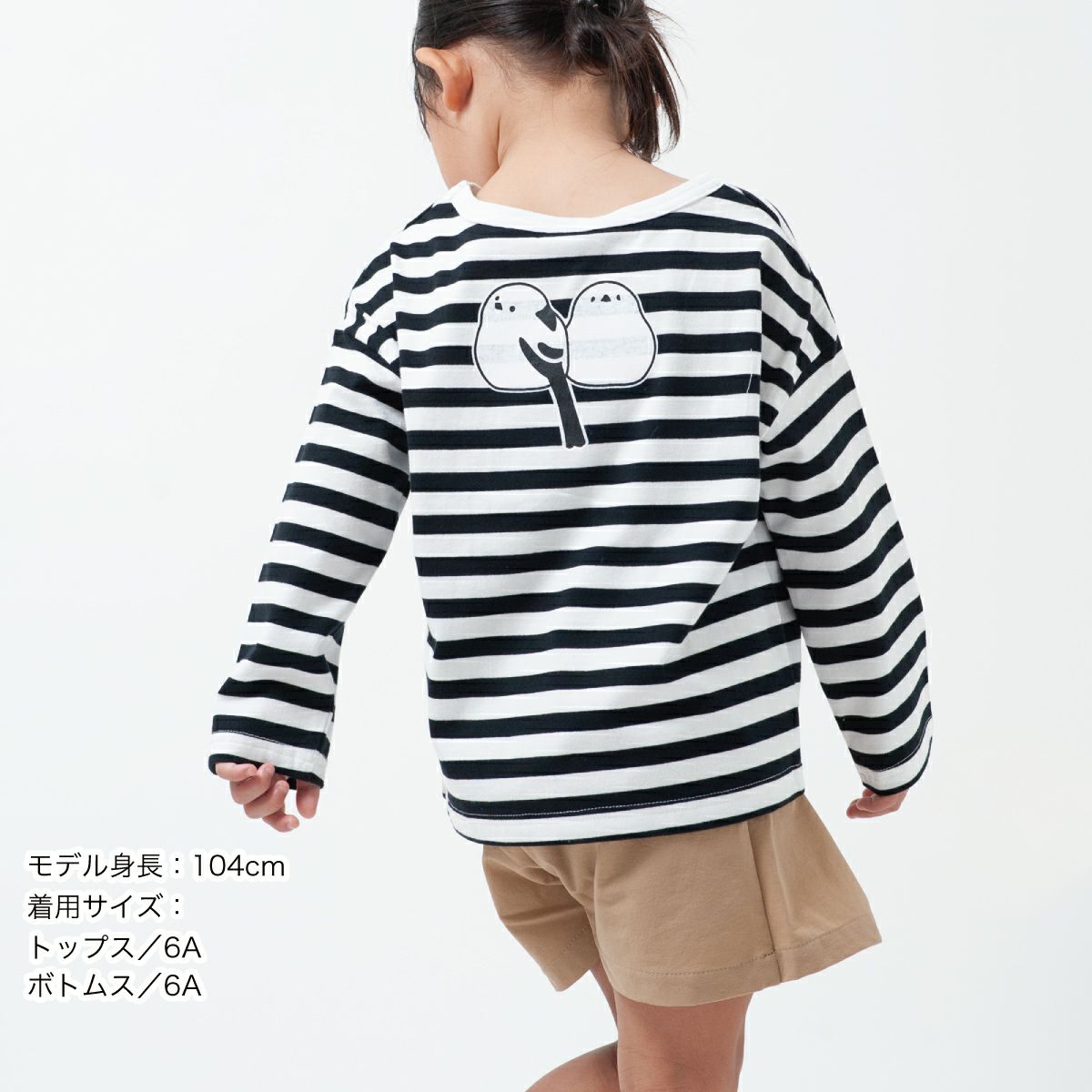 ボーダーワイド長袖Tシャツ「SHIMASHIMAENAGA」(シマシマエナガ)