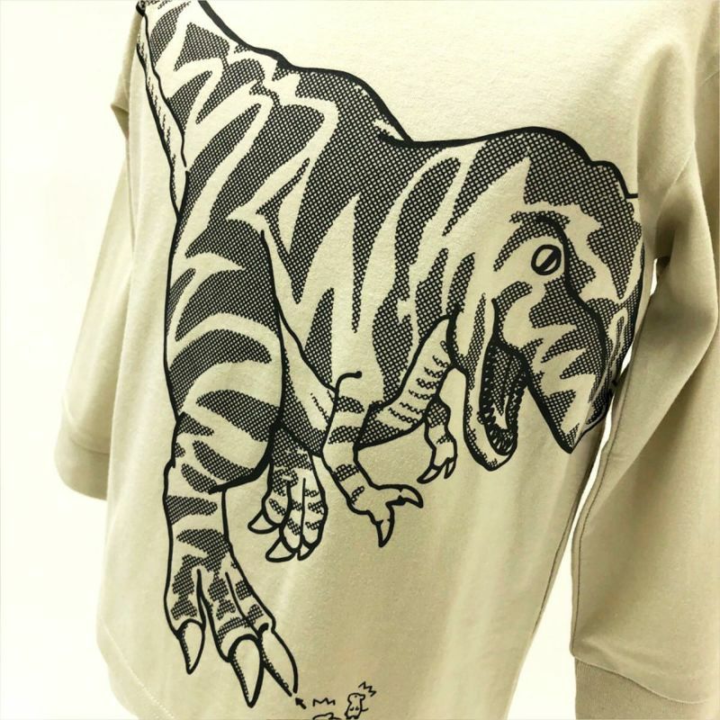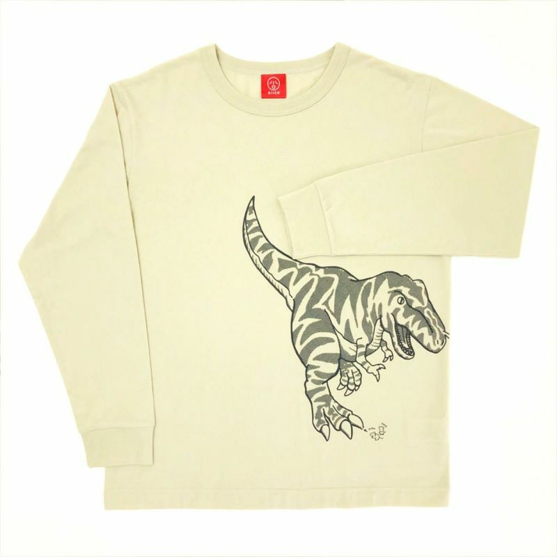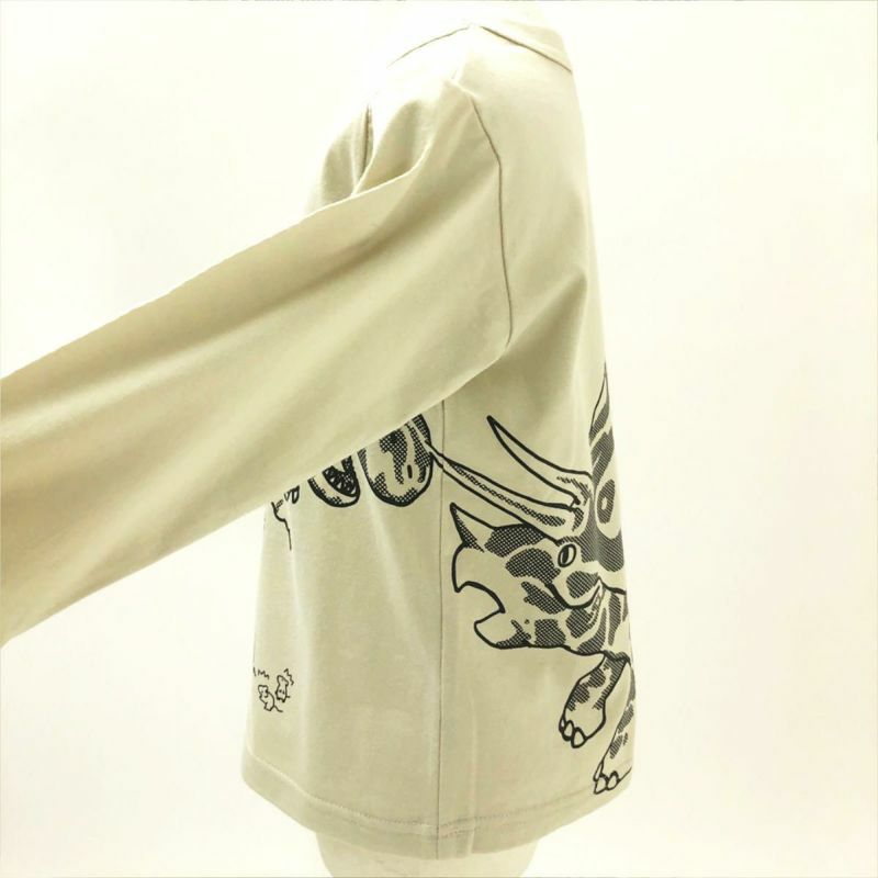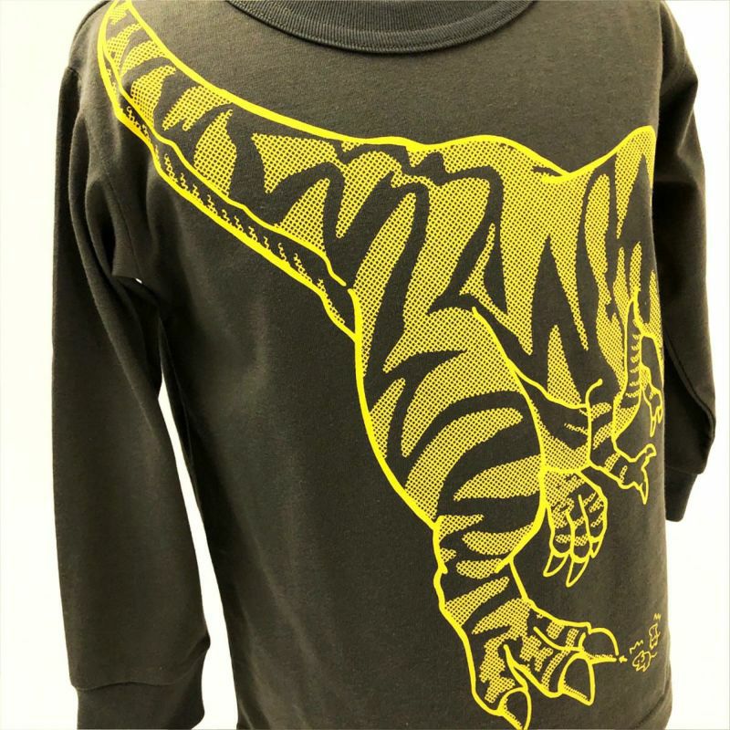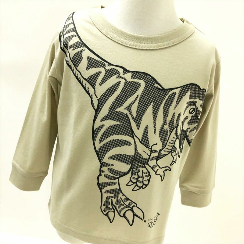 恐竜デザインのつながるシリーズが長袖で登場しました! ティラノサウルス vs トリケラトプス! 2体の柄をよく見ると実は迷路になっています♪ その迷路に挑む小さな2匹のネズミたち! 戦いのすき間を通って逃げ切れるでしょうか? みんなもネズミと一緒に迷路に挑戦してみよう♪ 袖口はリブ仕様なので大きめサイズでも手元がすっきりと見え、 手を洗ったり、腕まくりをする際にも便利です。