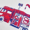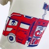 大人気Tシャツ「RESCUE」が半袖Tシャツにも登場☆ 「RESCUE(レスキュー)」は消防車の仲間でもある、救助工作車をモチーフにしました! Tシャツのフロントからバックまでつながるデザインです♪ 救助工作車にたくさんの工具を積んでおもちゃの救出へ! 今日はくまのぬいぐるみをレスキュー☆