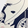 前から後ろへつながるスーパーカブ。 フロントをよーく見ると、、カブトムシが! バックを見ると、、荷台に乗せているのは野菜のカブ!? 「カブ」つながりの遊び心あふれるデザインです♪