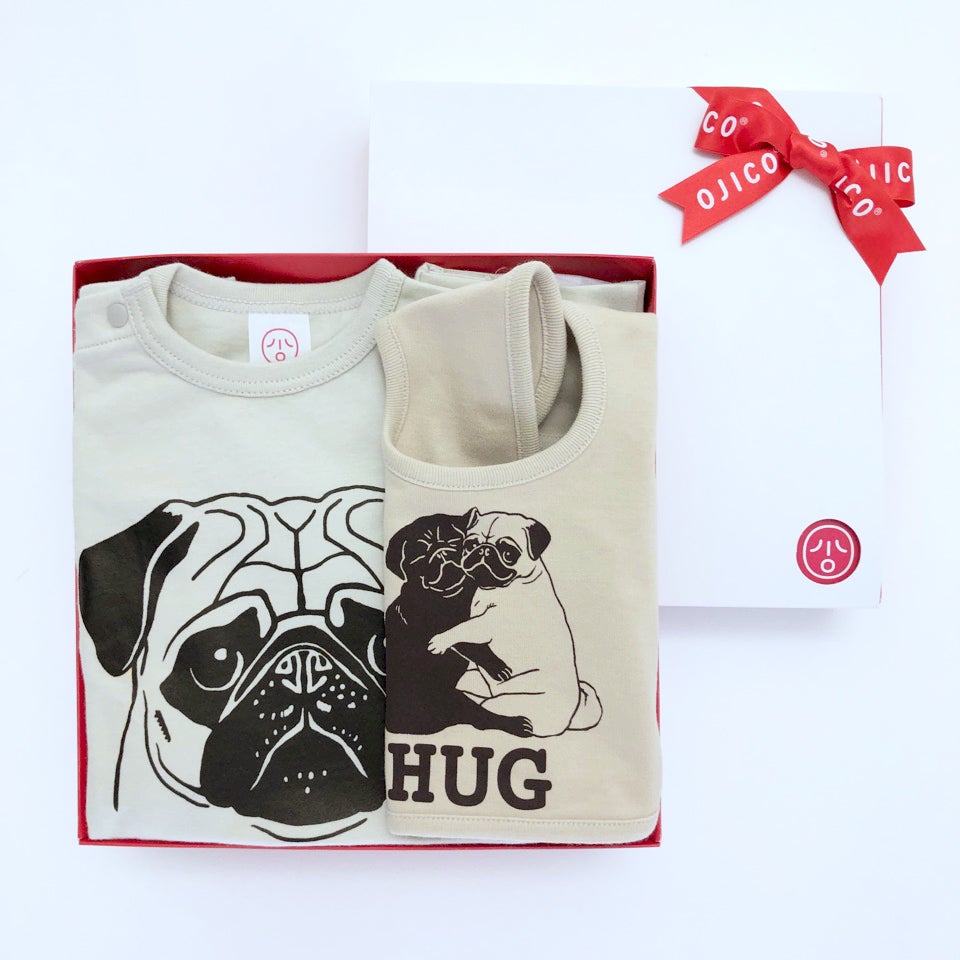 ベビーギフトセット・PUG(前開きロンパース+スタイ)